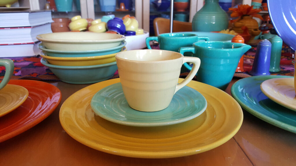 Hands down, I think Garden City Pottery has the best colorware glazes of any manufacturer. They dipped (vs. sprayed) the pieces, giving them a richness and thickness. The deep saturated colors are beautiful.
