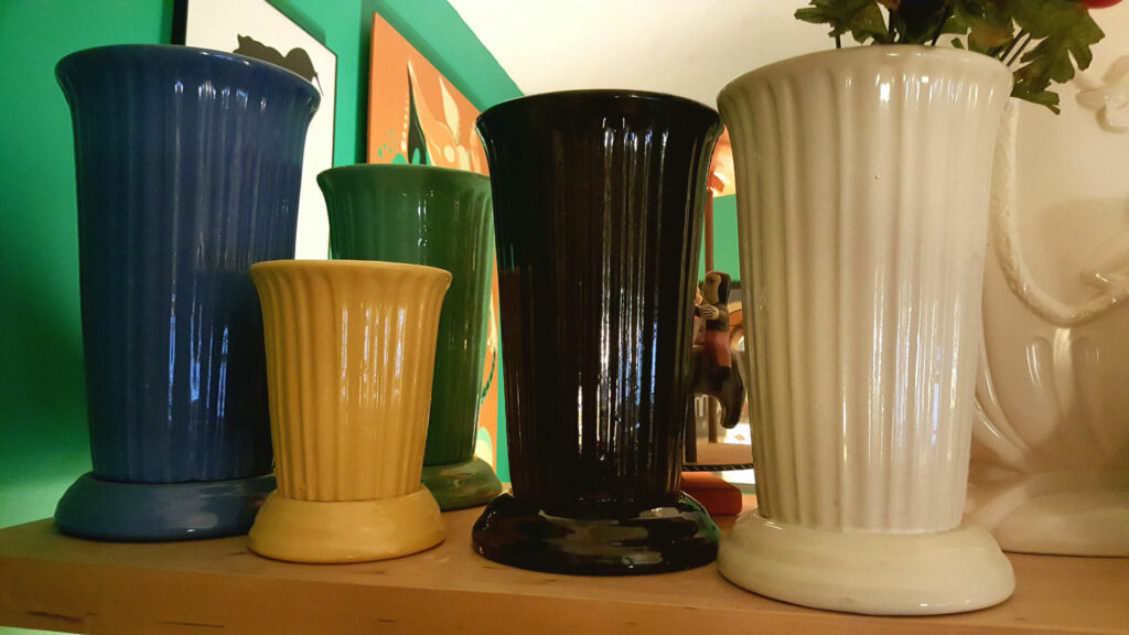 While California remained their primary distribution area, Garden City distributed nationally through retailers like Macy’s and Montgomery Ward. Since Garden City was primarily a wholesaler, retailers sold under store brand names. In addition to an absence of identifying company marks, no company product catalogs exist, and no official product names are known. Garden City Pottery is easily identified by its different glazes.