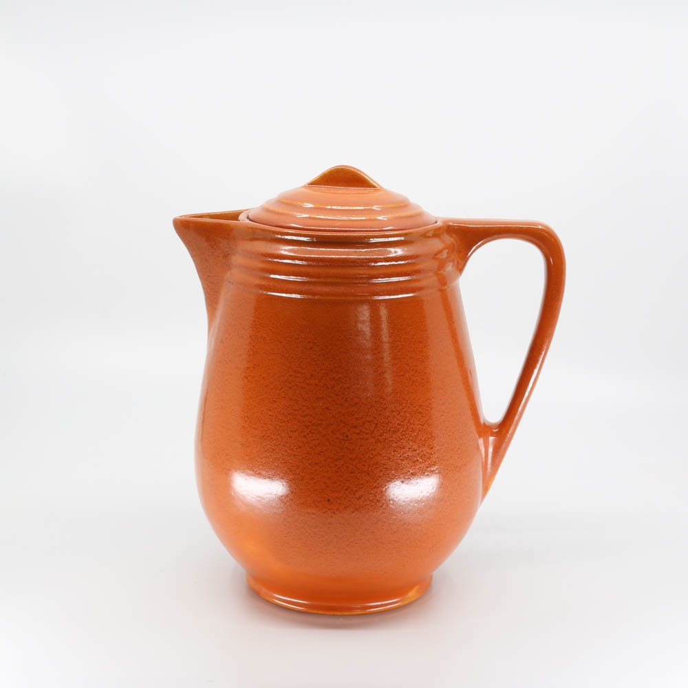 This early Hostessware large coffeepot was an early piece in the lineup. I’ve only ever seen five or six (three of those are shown here). The delphinium blue pot features its original lid; the red and Pacific blue pots were found lidless. However, the #429A lid (optional go-along for the #429 pitcher) fits well in a pinch.