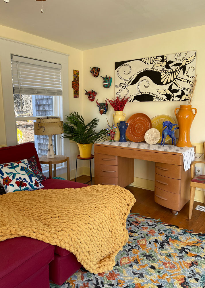 An “ell” refers to a wing or extension of a building that is perpendicular to the main part of the house and forms a letter “L.” A common feature of New England farmhouses, the ell typically served as a summer kitchen or other primary living space for the family. In the Leighton house, the ell sits on a granite foundation with pine crossbeams running over the ground.